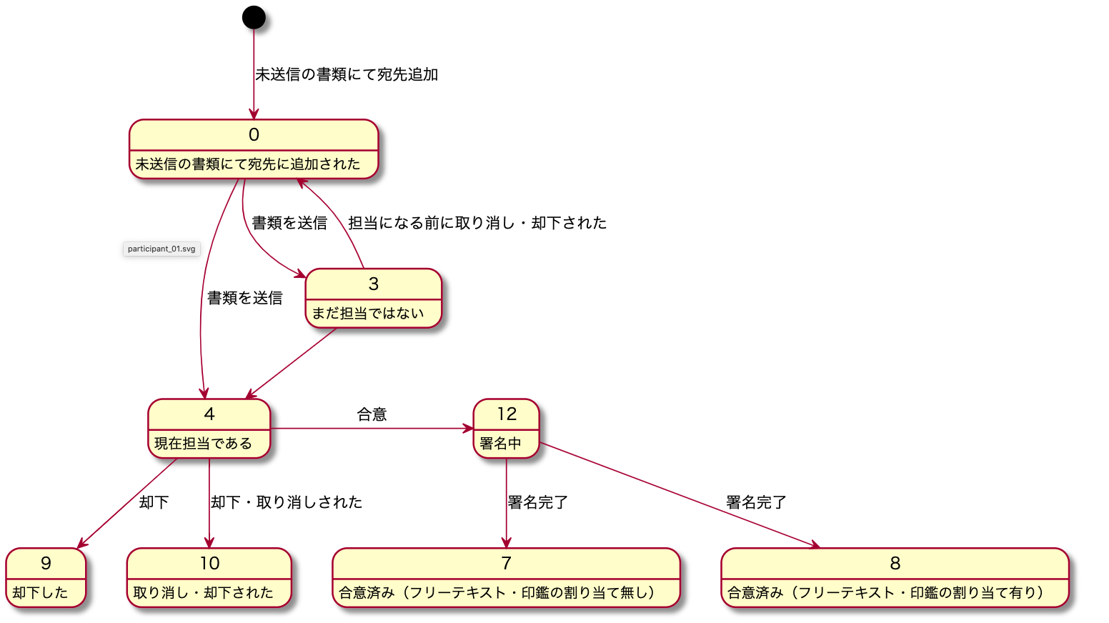 When using the CloudSign Web API, there may be times when you want to initiate action to suit the status of participants. The API document defines the participantModel status, however changes in the participant status are shown as follows.