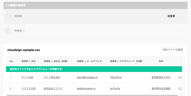 →Select “Sender” if you want to send all documents with the checkboxes selected. (You will not use the CSV file to input )