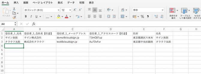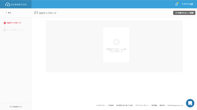 When you use the bulk sending, you must first create a “bulk sending template.” Then, you download the “CSV template”, enter in the necessary information, and upload it to complete the bulk sending. Further details are provided below.